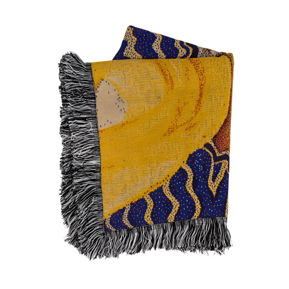 Large, soft, jacquard woven throw with ‘Fear the Pit’ knitted design.