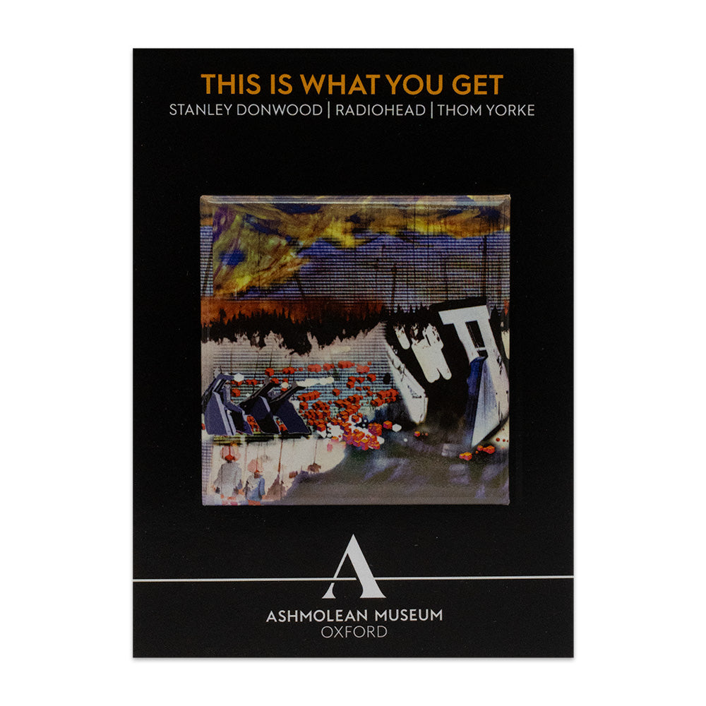 This square magnet comes presented on an Ashmolean Museum branded black backing card colour matched to the This Is What You Get exhibition.