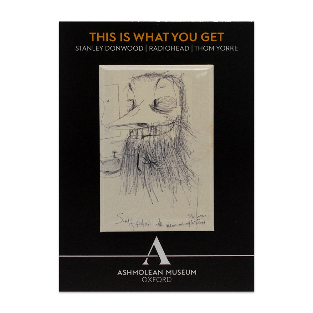 A decorative fridge magnet, depicting Thom Yorke's ink on paper artwork ‘Self Portrait’.