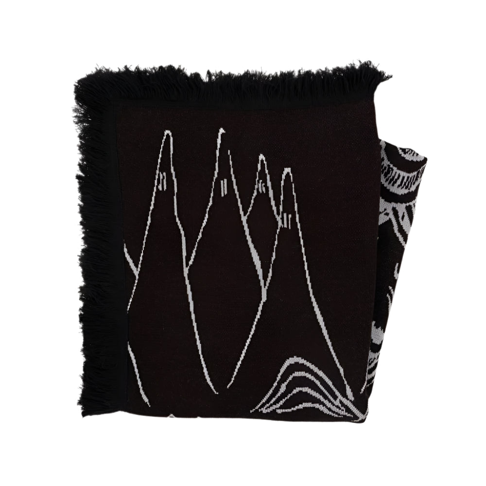 Large, soft, jacquard woven throw with ‘Map Drawing’ knitted design.