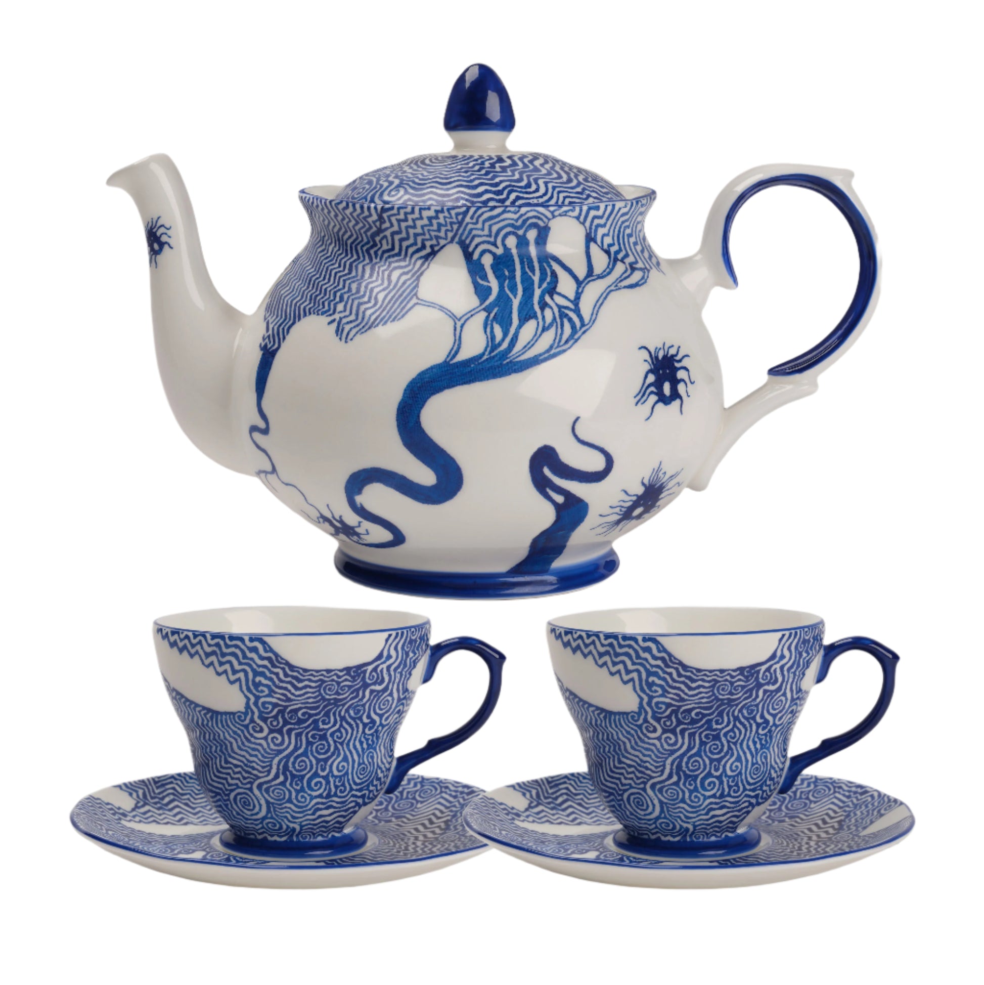 Bespoke, fine bone china tea pot and tea cups made in the UK